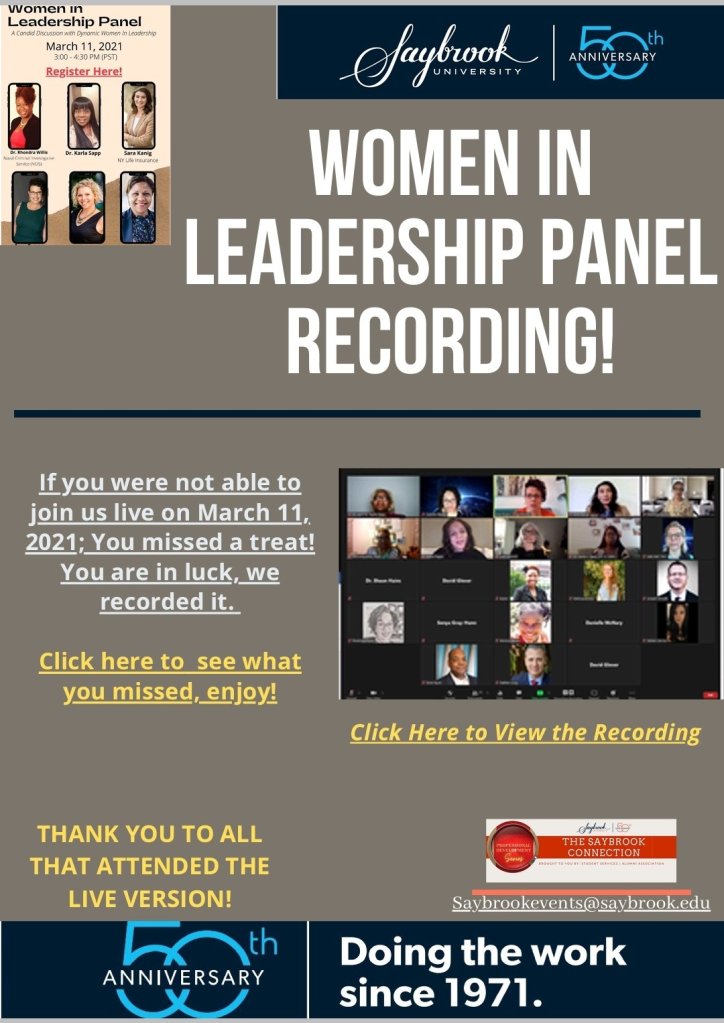 To View Click the Following Link: Saybrook University “Women In Leadership” Panel