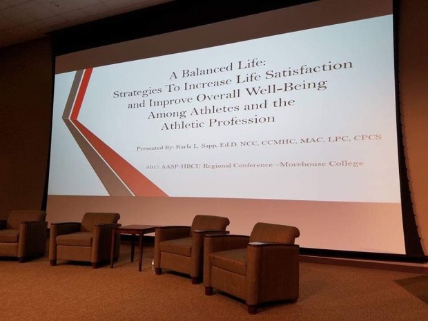 Dr. Karla presented “A Balanced Life: Strategies to Increase Life Satisfaction and Overall Well-Being Among the Athletic Profession” for the first time during the 2017 Association of Applied Sport Psychology (AASP) HBCU Southeast Regional Conference, held at Morehouse College March 3-4, 2017.