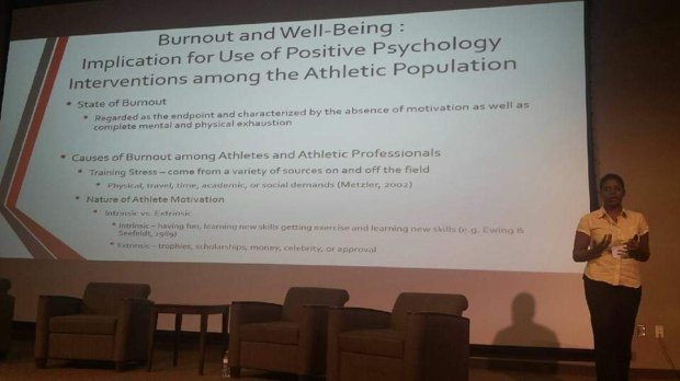 A lecture presentation, Dr. Karla, focused on Burnout and Wellness among the Athletic Professional and the Implications for use of Positive Psychology Interventions.