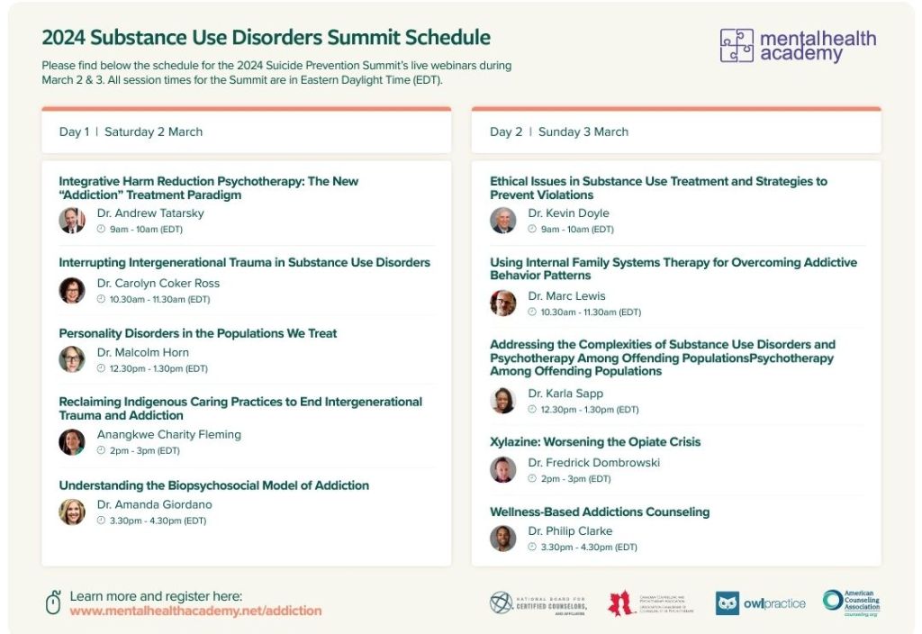 3/3/2024: Substance Use Disorders Virtual Summit – Mental Health Academy